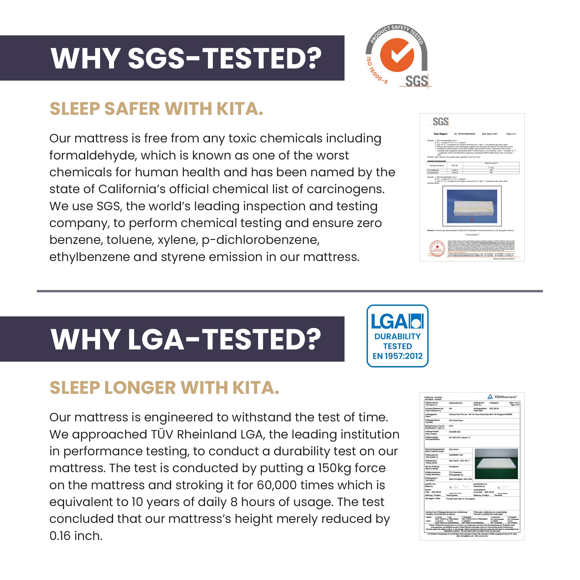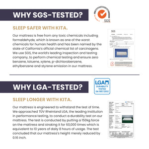 KITA offers a range of high-quality mattresses that combine comfort with solid support. We believe that what goes inside a mattress matters just as much as its appearance, and we invite you to discover the KITA difference. Follow your dreams and experience the ultimate in comfort and support with KITA mattresses.