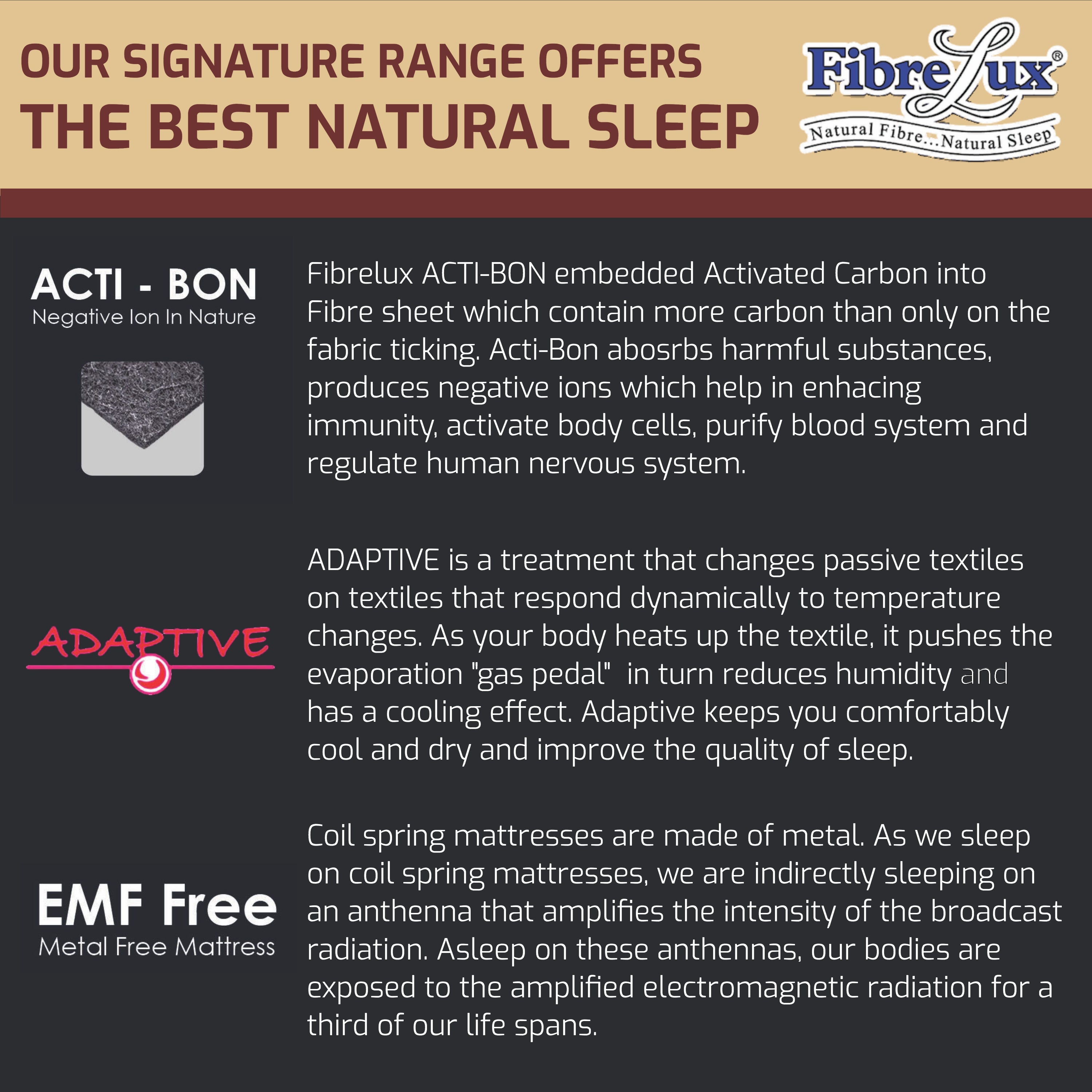 SIZE AVAILABILITY - The Fibrelux IMPERIAL REVIVE LITE Mattress is available in King Mattress/Mattress King/Tilam King, Queen Mattress/Mattress Queen/Tilam Queen, Super Single Mattress/Mattress Super Single/Tilam Super Single, Single Mattress/Mattress Single/Tilam Single.