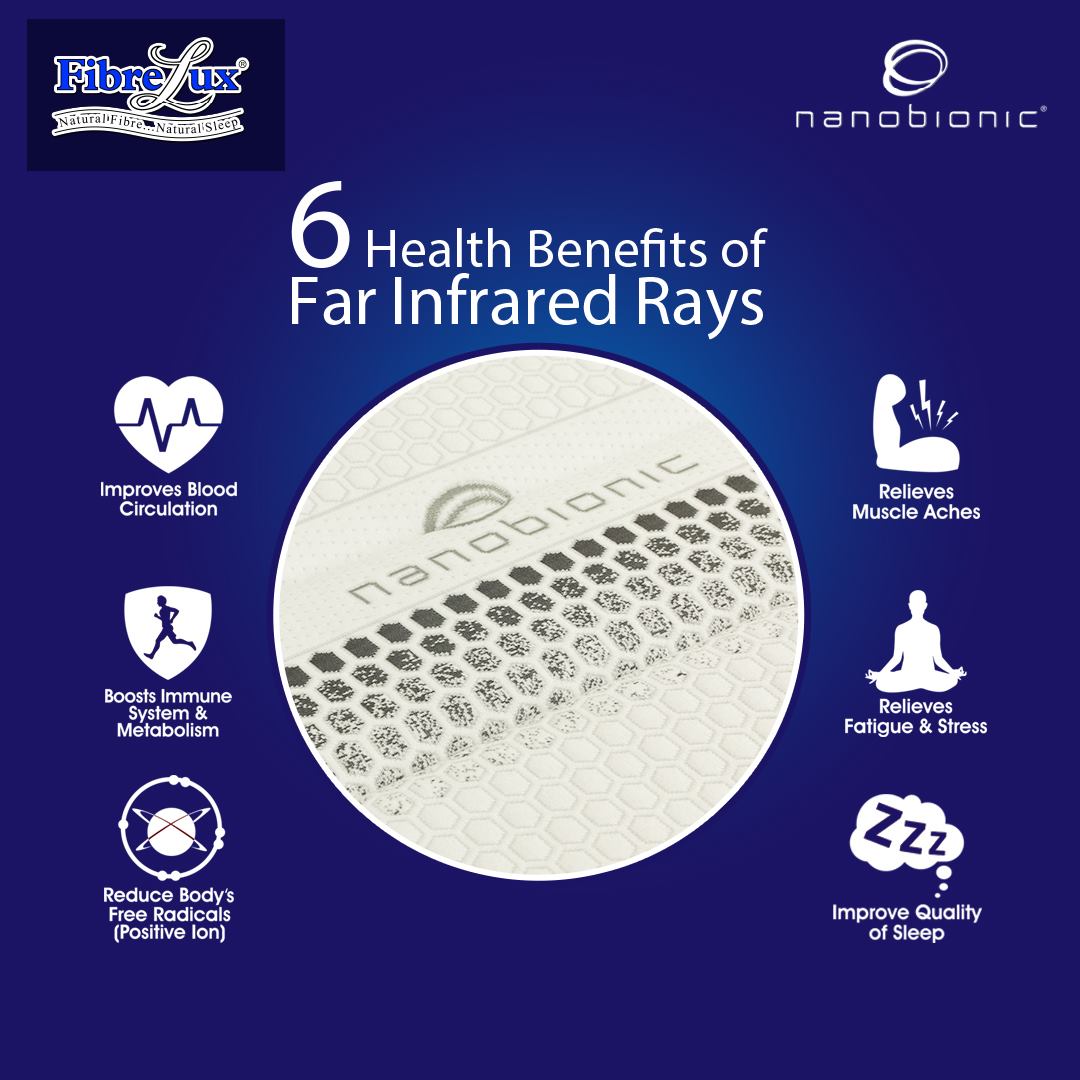 NANOBIONIC TECHNOLOGY - a high-tech textile that transforms body heat into Far Infrared Rays and reflects them back to the body. These Far Infrared Rays help improve your blood circulation, boost immune system & metabolism, reduce body's free radicals (positive ion), relieve muscle aches, relieve fatigue & stress and improve quality of sleep.