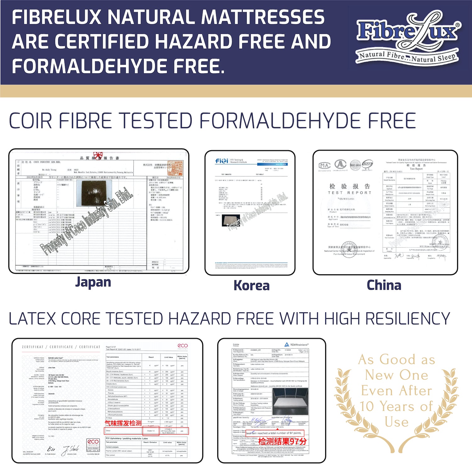 HYPOALLERGENIC MATTRESS - Full body support with 100% Rubberised Organic Coir Support Fibre, metal-free and formaldehyde-free. Natural latex is naturally resistant to dust mites, anti-bacterial and anti-fungal, and helps prevent allergies and skin irritation.