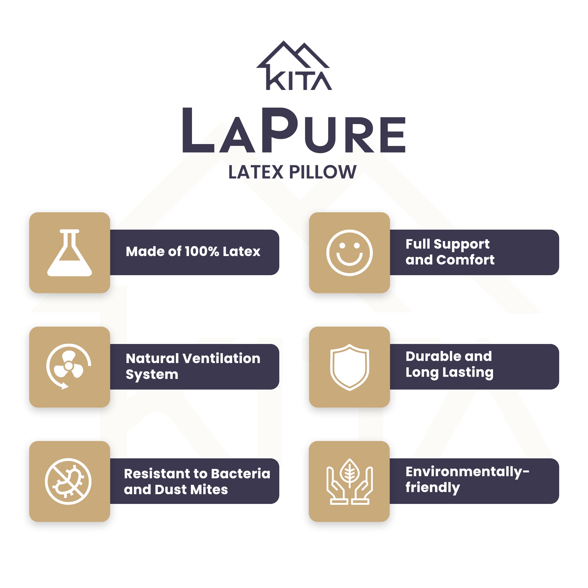 Introducing KITA LAPURE, the ultimate natural latex pillow for a good night's sleep. Made of 100% natural latex, KITA LAPURE offers full support and comfort, with a medium-soft feel that's perfect for all sleeping positions.