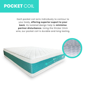 Our POCKETED COIL features 2mm diameter steel wire coils that are thicker than those found in most other mattresses. The coils are individually wrapped in non-woven fabric, which helps to distribute support across the back while also reducing motion transfer between partners. This results in a comfortable and undisturbed sleep for both you and your partner.